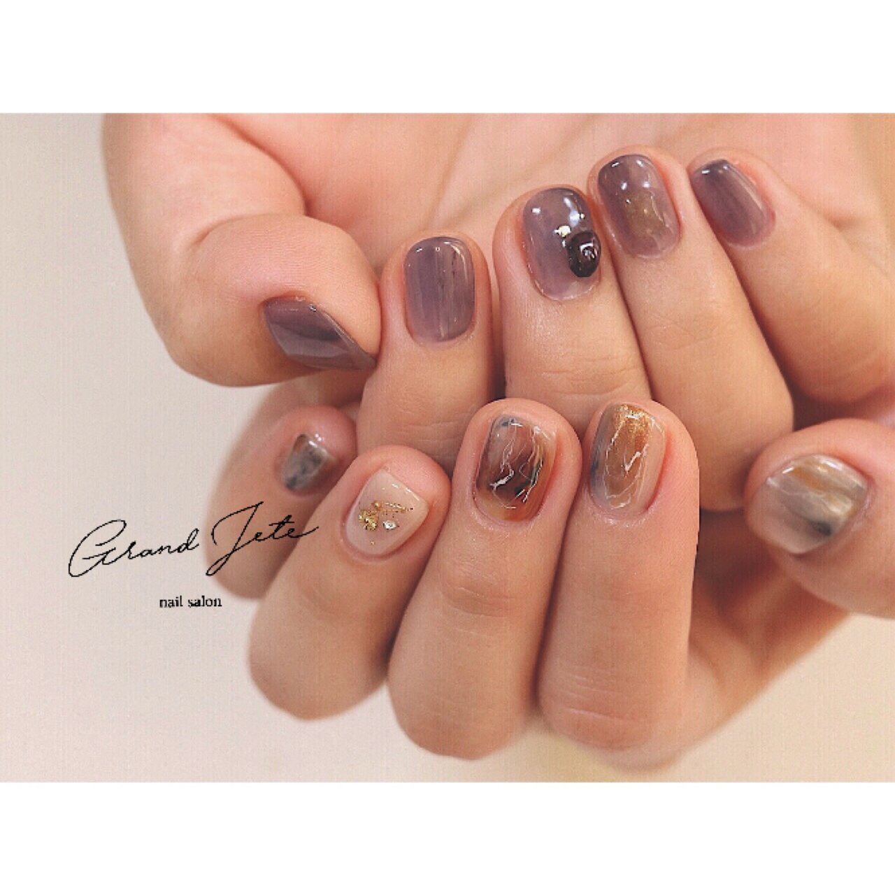 Nail Yumihari Pa Twitter グレーと茶をベースに べっ甲とランダムゴールドでちょいモードな秋ネイル 7000 ネイル シンプルネイル ネイルデザイン ナチュラルネイル べっ甲ネイル ネイルデザイン ショートネイル 中目黒ネイルサロン 札幌ネイルサロン 細