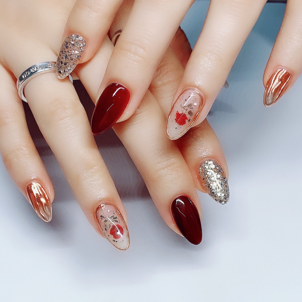 ネイルアーティストryさんのインスタグラム写真 ネイルアーティストryinstagram 薔薇ネイル ミラーでおしゃれに ネイリスト ネイルアーティスト ネイルアート ネイルチェンジ ネイルサロン 大阪ネイルサロン ネイルスクール ネイル